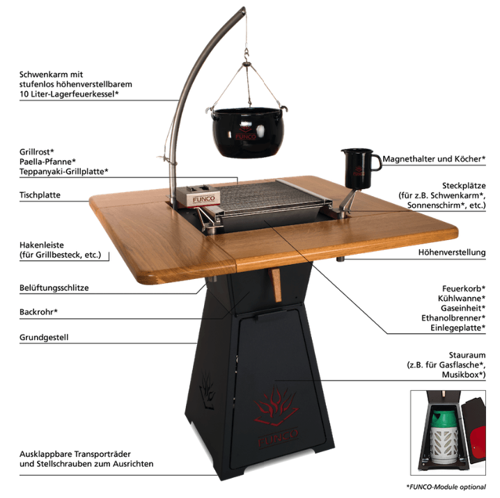 Der FUNCO ist ein wahres Multifunktionswunder, denn er kann so vieles sein. Je nach Bedarf fungiert er als Griller, Getränkekühler oder Suppen- und Punschkoch. Er ist schlichtweg das Chamäleon unter den Grillern und hat dadurch für jeden etwas zu bieten.