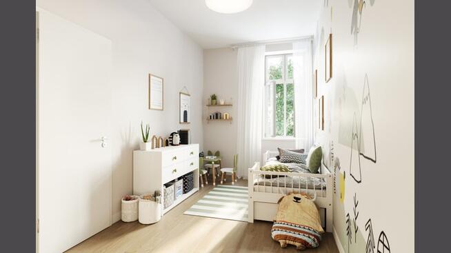 Die Gemeinschaftsplätze mit Bänken und Tischen laden zum entspannten Ver-weilen ein und bieten einen naturnahen Treffpunkt für alle Generationen. Ein einladender Kinderspielbereich bietet unbeschwerte Stunden und glückliche Kindermomente – direkt in der Wohnanlage, sodass die Kinder sorgenfrei und sicher spielen können. Bei der Planung wurde besonderer Wert auf nachhaltige Materialien gelegt.