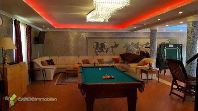 - Schwimmhalle: 200 m², alle Wände mit teuren Glasmosaiksteinen bedeckt