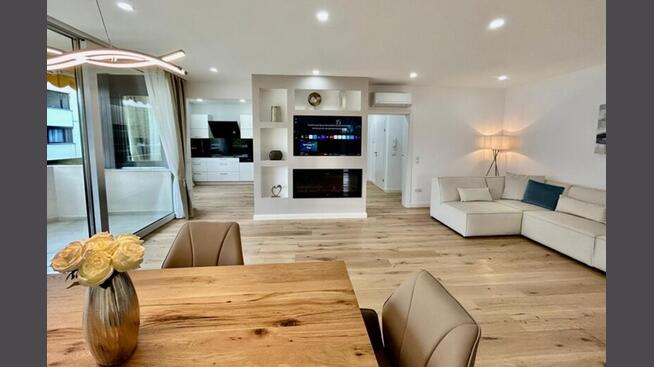 Die Wohnung wurde bis ins Detail renoviert und möbliert. Im Zuge der Sanierung wurden die Leitungen erneuert, eine Fußbodenheizung verlegt und in allen Wohnräumen eine Klimaanlage installiert. Alle Wohnräume sind mit einem hochwertigen Eichen-Parkettboden, Vorhänge, die Bäder mit exklusiven Fliesen, Armaturen sowie Wanne von Villeroy & Boch und Einbauküche von Nolte mit Miele Geräte ausgestattet. Das Hauptschlafzimmer ist mit einem Doppelbett, Nachttischlampen, TV-Gerät und einem Kleiderkasten ausgestattet. Im Wohnzimmer befindet sich eine Essgruppe, ein großes Sofa, TV-Gerät, Einbauschrank und Dekokamin.