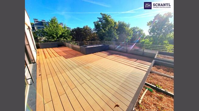Ihre neue Traumwohnung wird Sie restlos begeistern und teilt sich in einen geräumigen Vorraum mit Platz für eine Garderobe, 2 stylische Badezimmer - eines davon mit Fenster (uneinsichtig), Badewanne und privatem WC, das andere mit Badewanne und Waschmaschinenanschluss, ein separates WC mit Handwaschbecken, ein gemütliches Schlafzimmer mit Blick ins Grüne (Bäume wohin das Auge reicht), ein Master-Bedroom mit eigener riesiger Ankleide und Zugang zur hofseitigen Traumterrasse, sowie ein 3. Schlafzimmer mit Zugang zu einem weiteren Balkon. Herzstück der Wohnung ist das lichtdurchflutete Wohn-Esszimmer mit viel Licht, rundum großen Fenstern und Zugang zur riesigen Wohnlfühl-Terrasse.