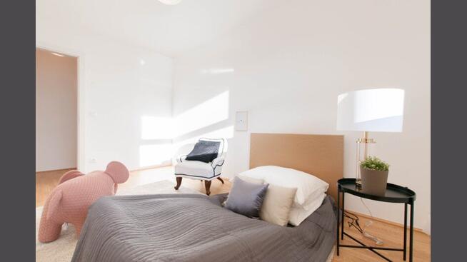 Zwei Schlafzimmer, welche praktisch getrennt vom Wohnbereich liegen, sind über den Vorraum zu erreichen und verfügen über eine angenehme Größe von jeweils über 12 m². Hier lassen sich ein Bett und Schränke bzw. ein Schreibtisch optimal platzieren.