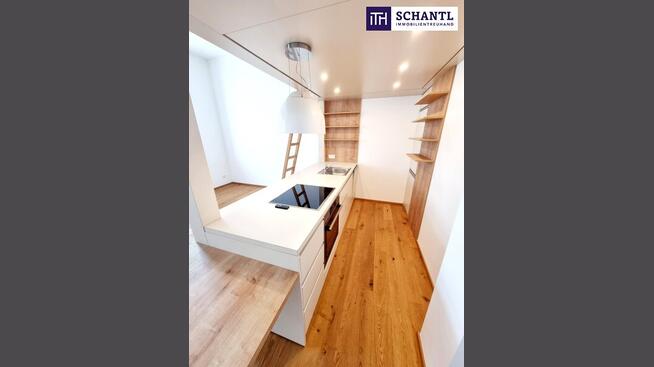 Ihre neue Wohnung wird Sie restlos begeistern und teilt sich in einen geräumigen Vorraum mit Platz für eine Garderobe und eine perfekten Bereich, den man als Stauraum/Schrankraum nutzen kann, ein stylisches Badezimmer mit Dusche und WC, einen praktischen Abstellraum mit Waschmaschinenanschluss und Luftwärmepumpe, sowie ein heller großer Wohn-Essbereich mit voll ausgestatteter Einbauküche und einem raffiniertem Schlafplatz nahe den Sternen...