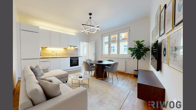 Zum Verkauf gelangt eine hochwertig sanierte 3-Zimmer Wohnung mit ca. 55 m² Wohnnutzfläche. Gelegen ist die östlich ausgerichtete Wohnung im 3. Stock (ohne Lift) eines gepflegten gesetzlichen Neubaus aus den 1950ern. Die Wohnung überzeugt mit einer qualitativen Ausstattung und einem komfortablen Grundriss, wobei alle Zimmer/Räume zentral vom Vorraum aus begehbar sind. Als Highlight ist im Kaufpreis eine Tischler-Einbauküche mit Siemens-Geräten enthalten.
