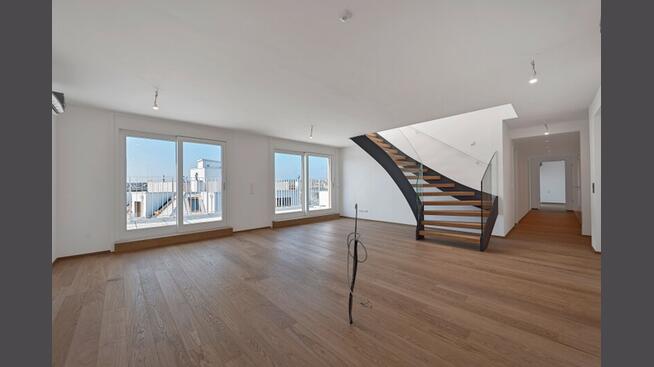 Das Penthouse mit 4 Zimmer befindet sich im 2. Dachgeschoss mit eigenem Liftzugang und bietet eine Wohnfläche von ca. 134 m² sowie zwei Terrassen und eine Dachterrasse. Die Raumaufteilung gliedert sich wie folgt:
