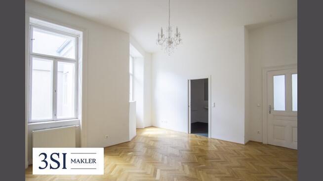 * Französisches Fischgrätparkett, prachtvolle Stuckleisten, traditionelle Kastenfenster mit Laibungen, hohe Türen im Alt-Wien Stil