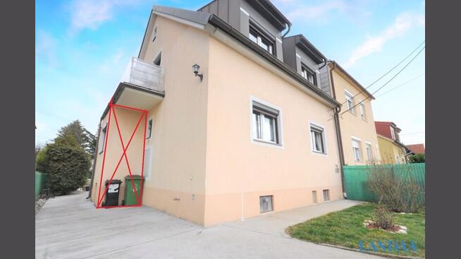 Der hintere Bereich (ca. 400 m²) wird als separates Fahnengrundstück (€ 295.000,–) verkauft. Um die erforderlichen 3 m Fahnenbreite zu schaffen, wird der derzeitige Eingang des Hauses auf die hintere Seite des Hauses verlegt. Diese Umbaumaßnahme sowie sämtliche weiteren Adaptierungen von außen (z. B. neue Stiege/Tür) übernimmt der Verkäufer vollständig auf eigene Kosten. Die komplette Grundstücksteilung, die Eintragung des beidseitigen Fahr- und Leitungsrechts sowie alle baulichen Arbeiten (Eingangsverschiebung inklusive) werden erst durchgeführt, nachdem beide Grundstücke (Vorderhaus + Fahnengrundstück) verkauft sind.