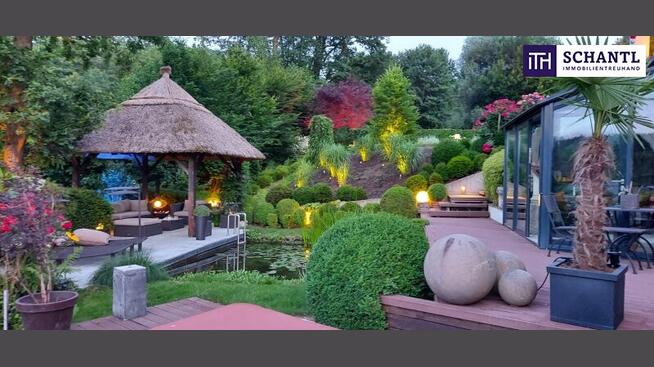 Die ca. 380 m² Wohnfläche erstrecken sich über drei Ebenen und schaffen klar strukturierte Bereiche für Familie, Gäste und Homeoffice lichtdurchflutet, offen gestaltet und mit hochwertigen Materialien ausgeführt. Der liebevoll angelegte Parkgarten, exotische Gartenarchitektur und perfekt integrierte Outdoor-Bereiche schaffen ein einzigartiges Ambiente, das Natur und Design harmonisch verbindet. Unterstützt wird dieses besondere Wohngefühl durch ein hochwertiges SONOS-HiFi-System, das das gesamte Objekt beschallt.