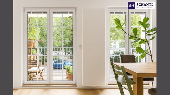 - Eine lichtdurchflutete Wohnküche mit französischen Fenstern, Echtholzparkett und Zugang zum charmanten Balkon – der perfekte Raum für stilvolles Wohnen, gemeinsames Kochen und entspannte Abende.
