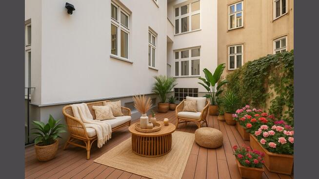 Dieser Wohneinheit ist ein privater Hofanteil im Ausmaß von rund 20 qm zugeordnet, den Sie nach Wunsch gestaltet können. Der Zugang ins Freie erfolgt über den Vorraum bzw. die Loggia. Vom Verkäufer wird eine Treppe in den Innenhof errichtet sowie ein hübscher Bodenbelag verlegt und ein ca. 2 m hoher Zaun als Sichtschutz errichtet.