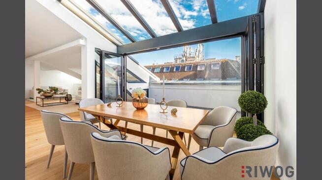 Diese außergewöhnliche Penthouse-Residenz im Herzen des 1. Wiener Gemeindebezirks vereint rund 316 m² Wohnfläche sowie ca. 10,22 m² Terrasse, mit architektonischer Großzügigkeit und kompromisslosem Anspruch an Qualität und Privatsphäre auf zwei Ebenen.