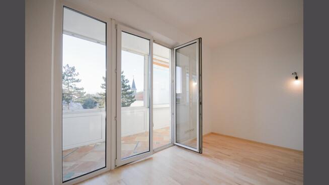 Das ausgesprochen schöne und sonnige Wohnzimmer hat eine ideale Größe von 26 m² - hier lassen sich eine gemütliche Couch und ein Essbereich gut stellen. Ein Kaminanschluss im Wohnbereich rundet das besondere Flair des Raumes ab - hier lässt sich ein Schwedenofen perfekt in Szene setzen. Die vorgelagerte 7,2 m² große Loggia in Südausrichtung ladet zu gemütlichen Abenden oder einem köstlichen Frühstück im Freien ein. Durch die komplette Verglasung der Loggia, kann sie ideal auch in den Wintermonaten genutzt werden.