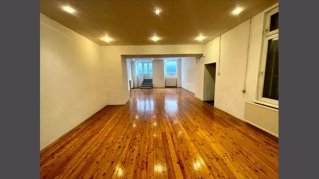 Großzügiges Raumkonzept: Das Herzstück bildet ein weitläufiger Open-Space-Bereich, der mit klassischem Parkettboden ausgestattet ist – ideal für Ateliers, Showrooms oder moderne Office-Konzepte.